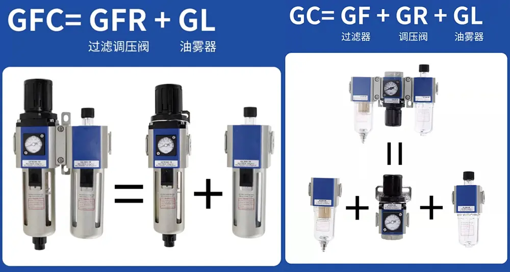 GC=GF+GR+GL (филтер + пневматски регулатор + лубрикатор)