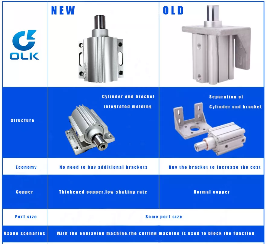 OLK PNEUMATIC има два стила на цилиндри за да ги исполни различните барања на сцената. За конкретни детали, ве молиме контактирајте го тимот за продажба на OLK.