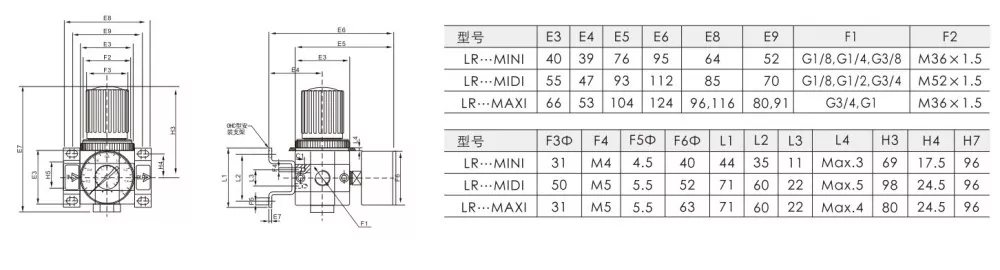 Регулаторот на притисок се користи за да се намали притисокот на компресираниот воздух, да Регулаторот на притисок на фестивалот за типот LR е рачно прилагодлив директно дејство на структурата на воздухот со дијафрагма. Може да се комбинира со филтри и лубрикатор за да формира единица FRL.