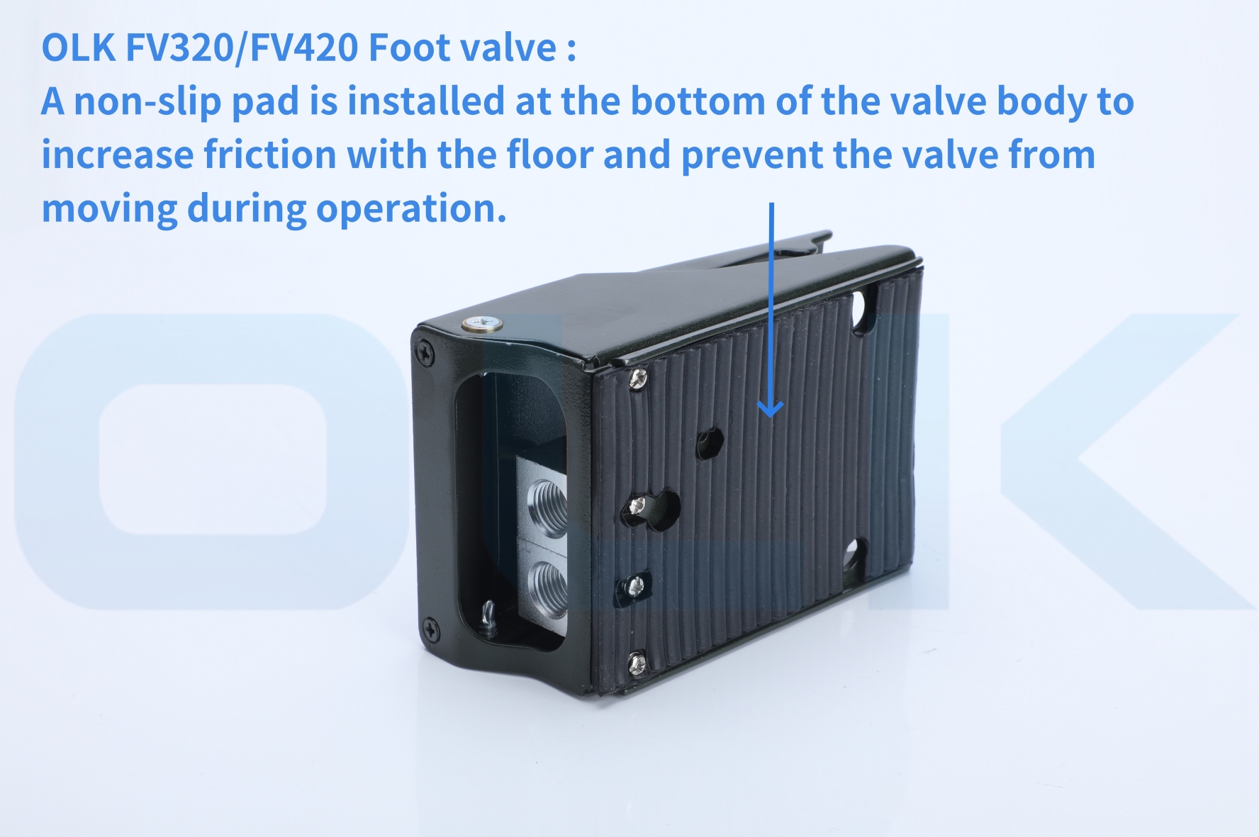 На подлогата што не е лизгање е поставена на површината на педалот и основата на вентилот за да се обезбеди подобар зафат на нозете и да се спречи лизгање за време на работата.