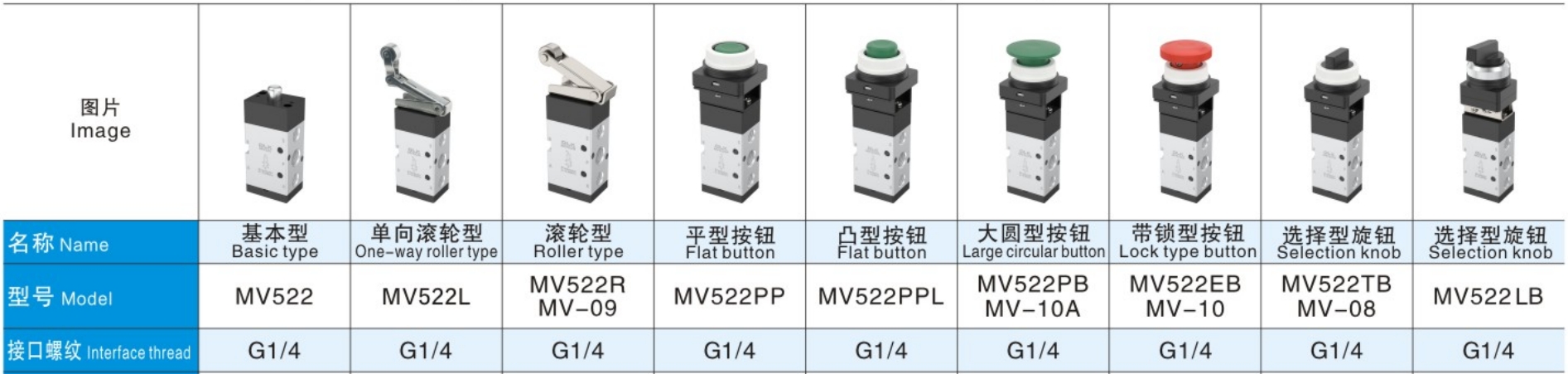 Механички контролен вентил MV522 серија 5 начини на општи параметри