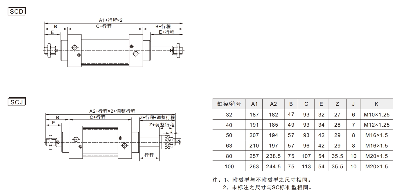 4. Во споредба со стандардните цилиндри IS015552, цилиндрите на сериите SC имаат помали должини за истиот дијаметар на цилиндарот.