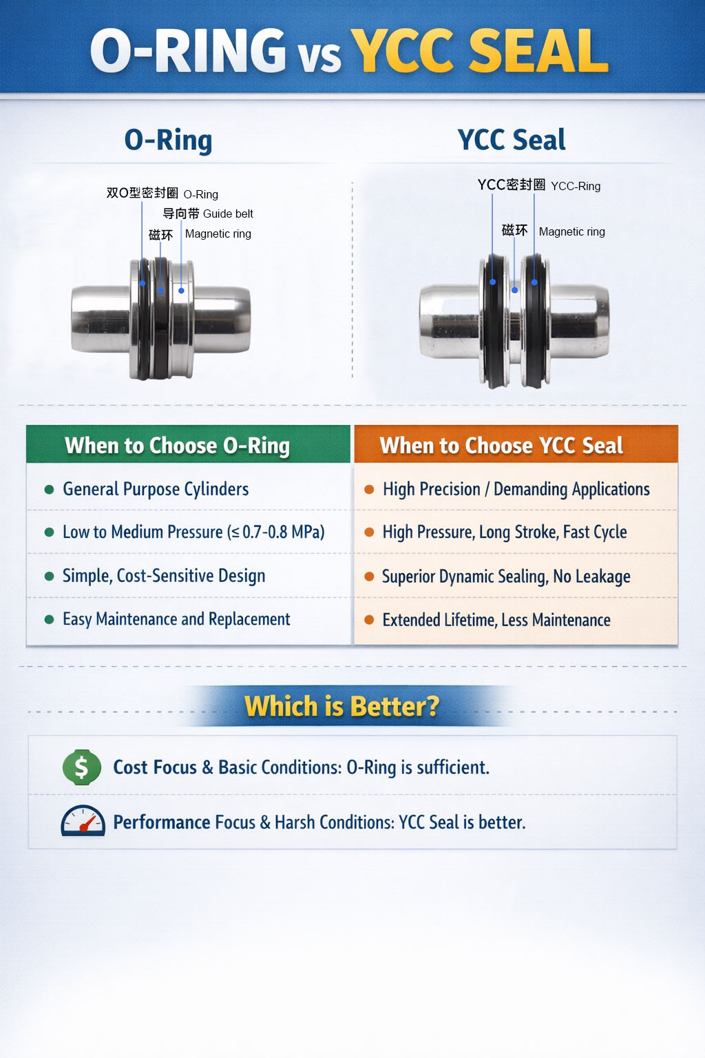 Во споредба со традиционалните О-прстени, заптивката YCC обезбедува подобро динамично запечатување и отпорност на абење, овозможувајќи му на цилиндерот да одржува сигурни перформанси при промени на притисокот и повторени циклуси. Ова значително го намалува раното истекување и ги продолжува интервалите за одржување.