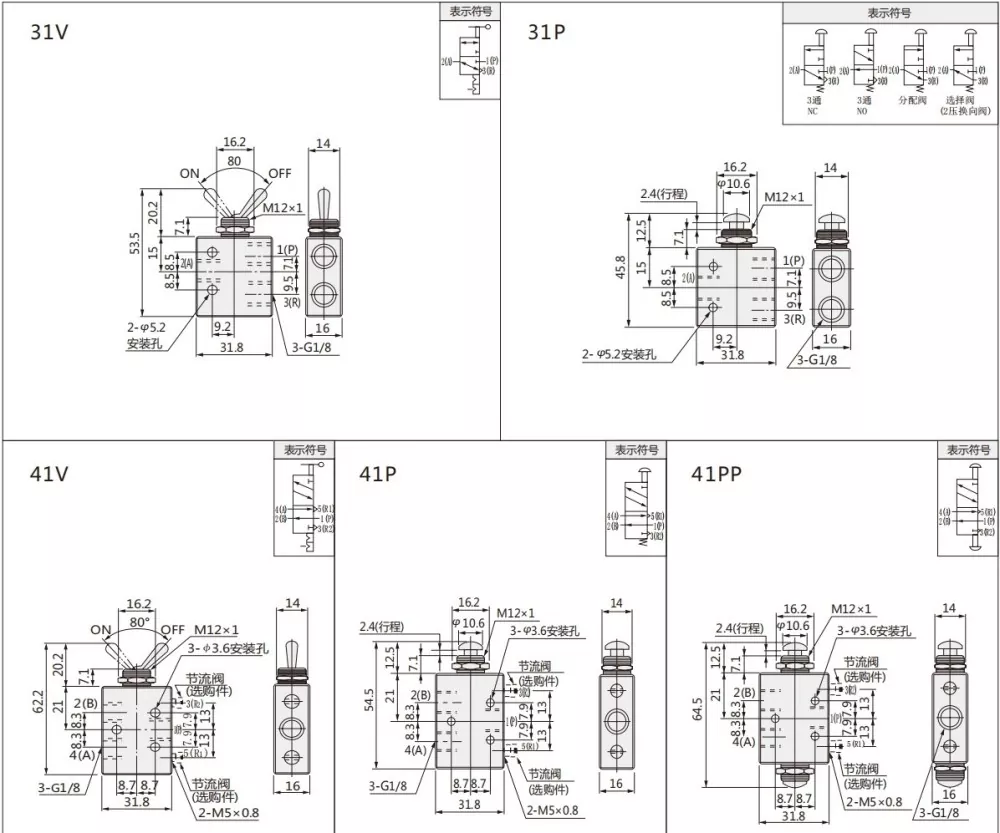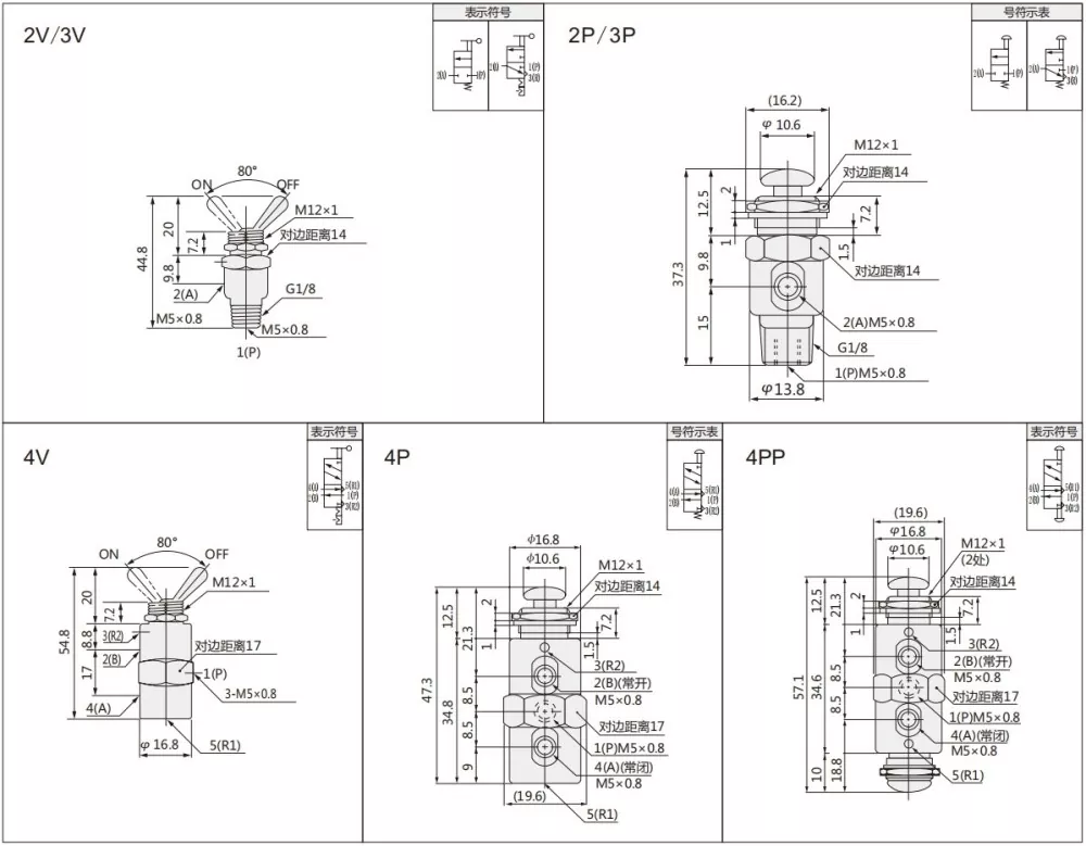 Може да се изберат вентилот TAC Series Thoggle Valve има 2 позиција 2 начин, 2 позиција 3 и 2 позиција 5 начин.