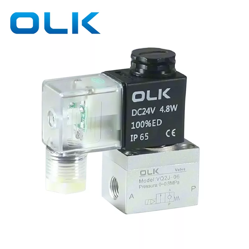 Пилотот на VQ серијал управуван со двонасочен електромагнетниот вентил Работен медиум е сув воздух со голем капацитет на проток (1,5 dm³/(s · бар)) .итилна состојба е нормално затворена (NC) Тип на вентил. Одговор со голема брзина 7ms или помалку. Изборот на навојниот интерфејс поделен на две спецификации: VQ2J-06 (G1/8), VQ2J-08 (G1/4).